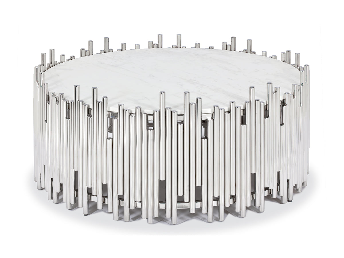 Industrial meets glam with this centerpiece-worthy coffee table. The white marble top combined with polished stainless steel frame will ensure the room it's placed in is seen as anything but ordinary.