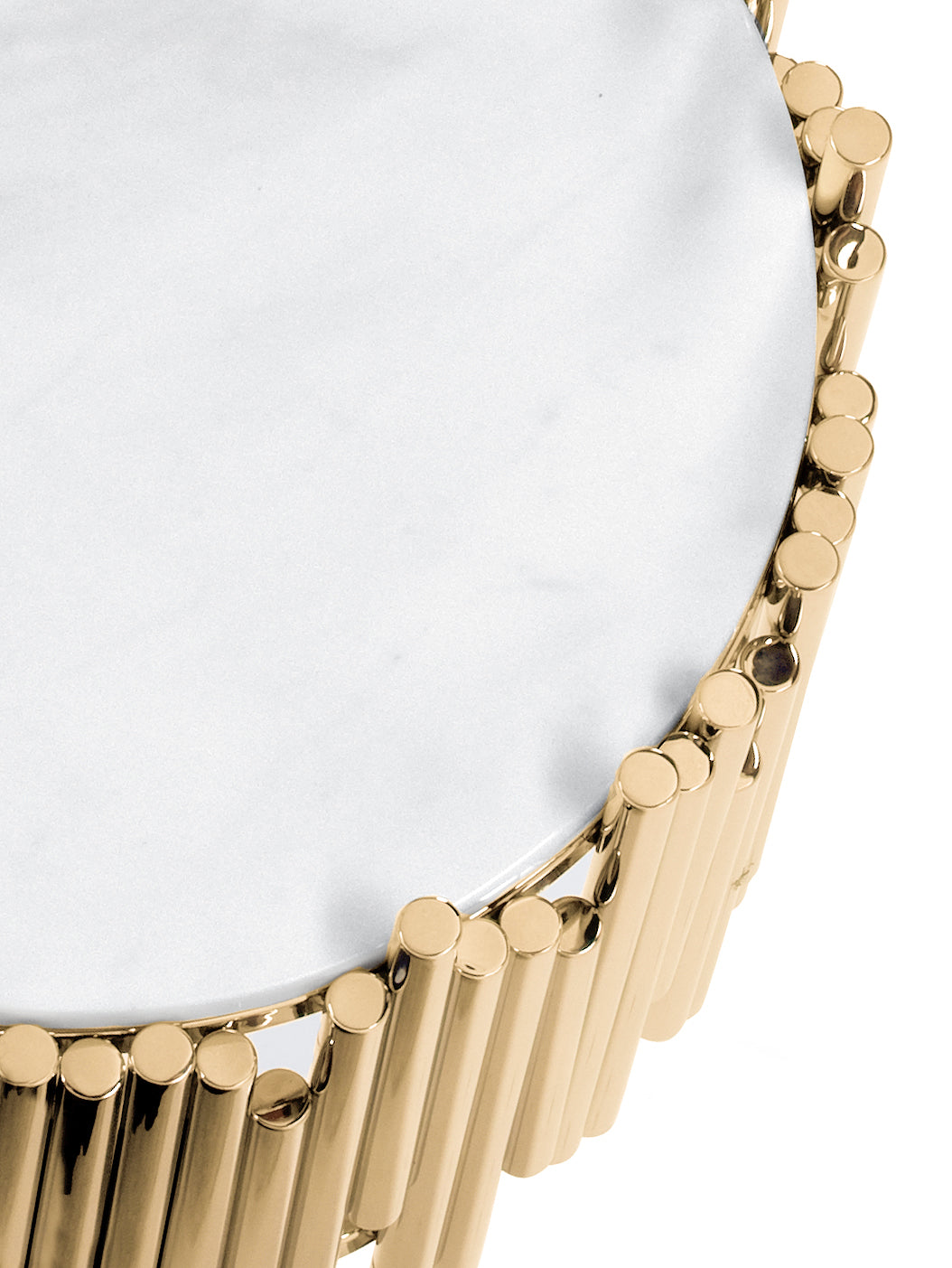 Industrial meets glam with this marvelous side table. The white marble top combined with polished gold stainless steel frame will ensure the room it's placed in is seen as anything but ordinary.