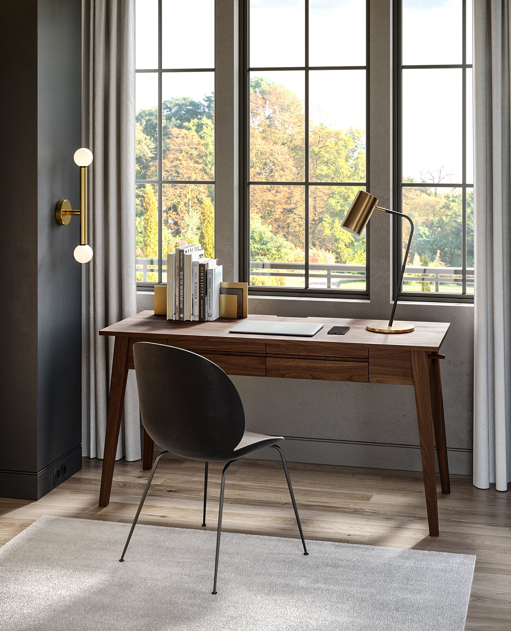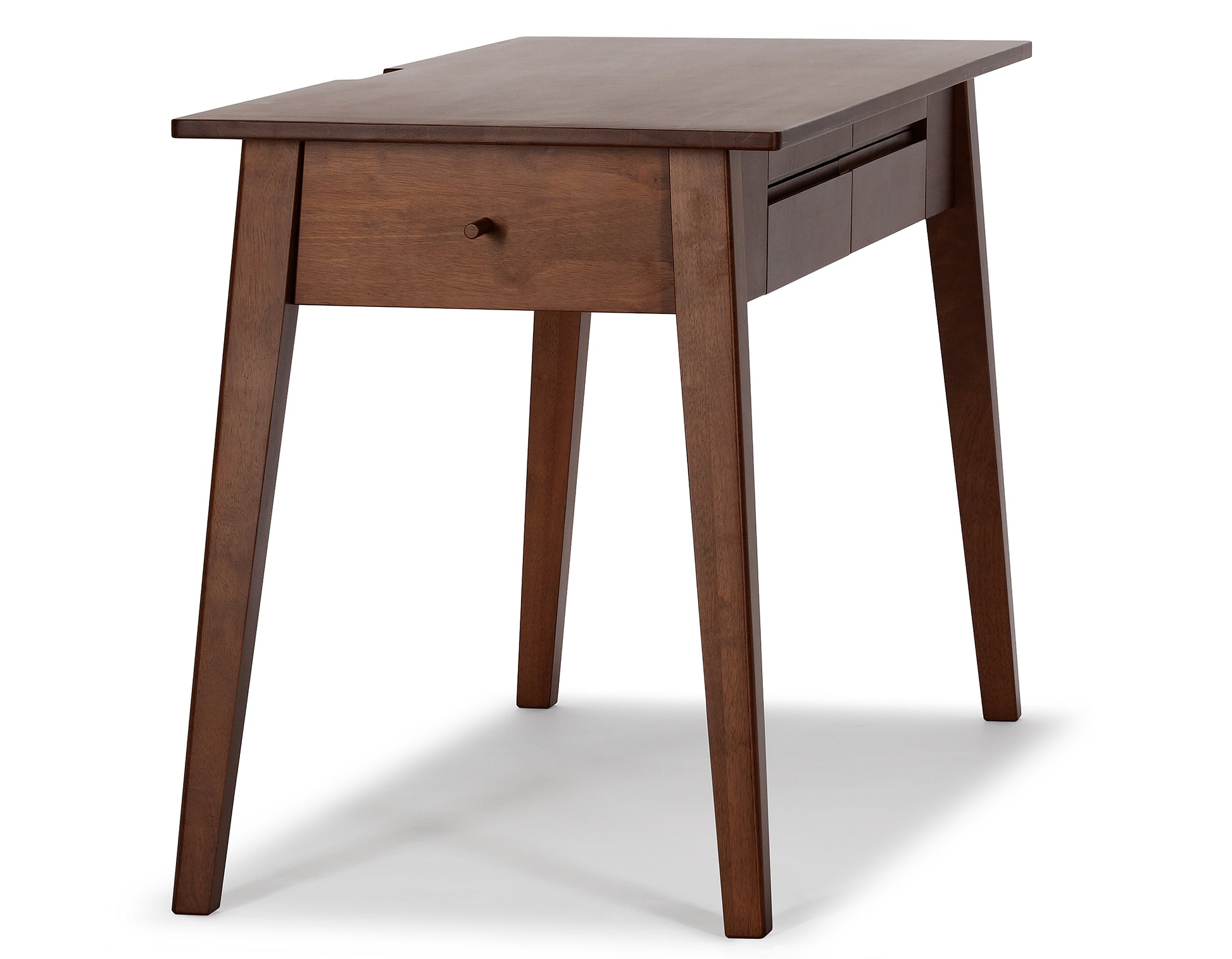 With its open concept design and clean aesthetic, the desks understated design features a natural, dark brown wood finish that complements the simple, angular contours. The drawers and the space for computer cables make this desk even more unique.