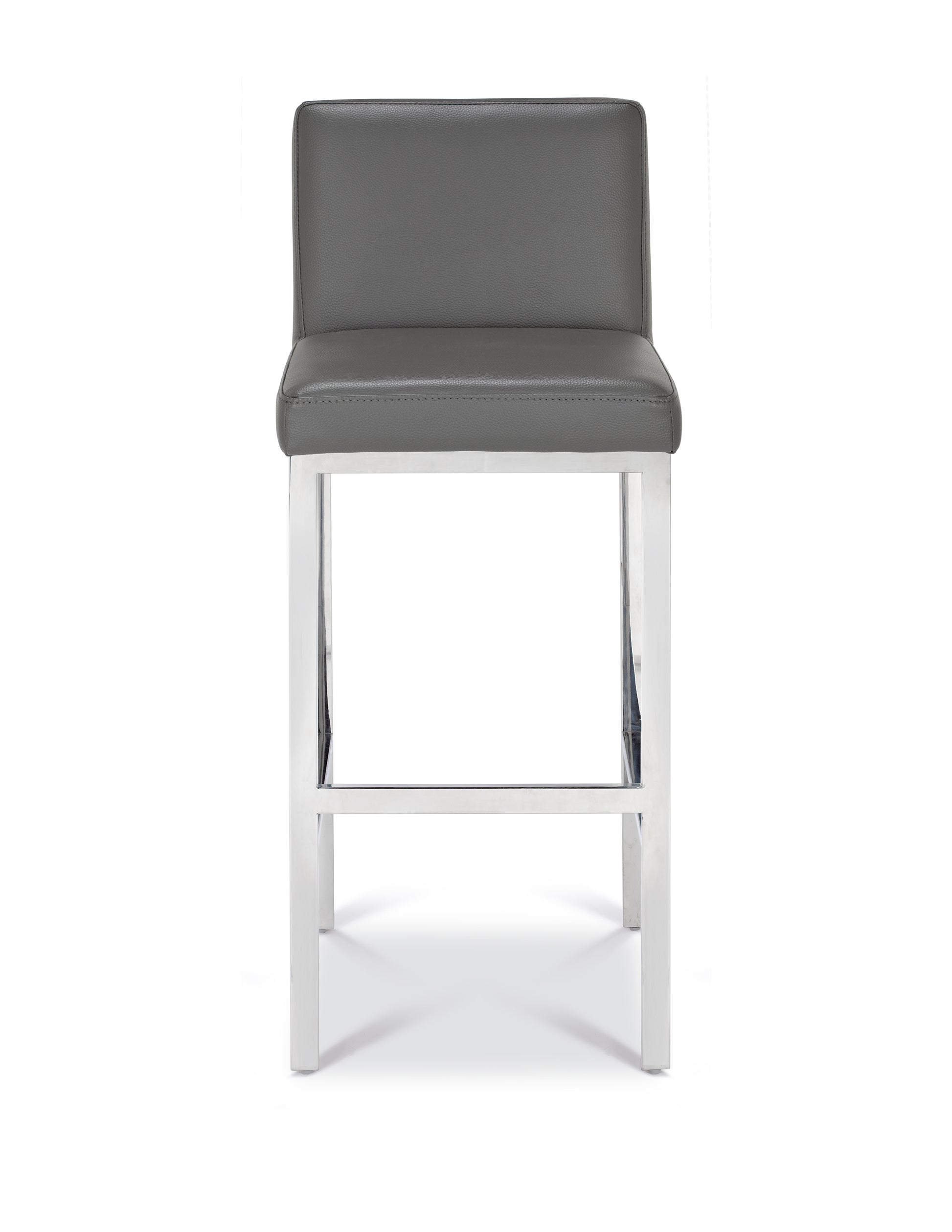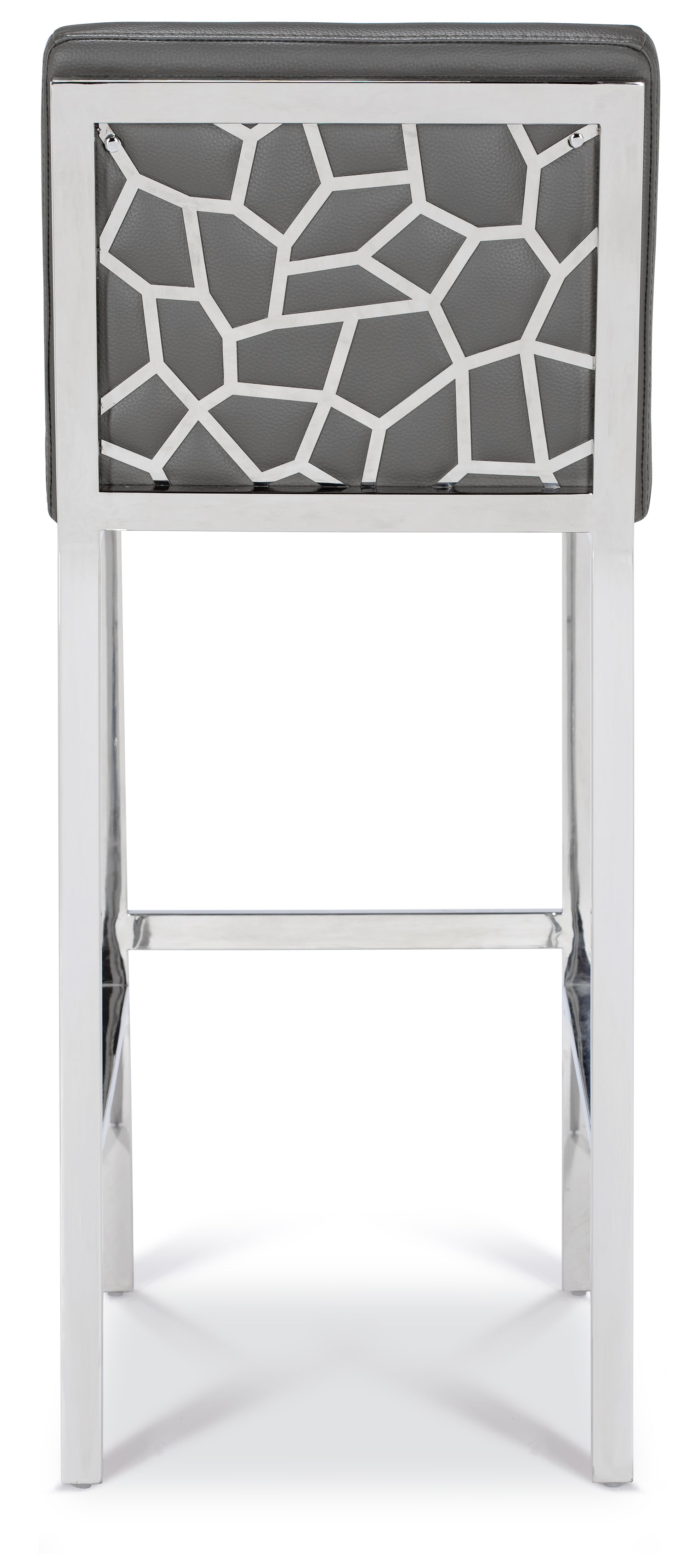 Patterned back design in polished steel body with faux leather cushioning. This is a stylish bar stool inspired by contemporary designs with its steel legs and back. The stool is both comfortable and luxurious and will prove to be a great piece in any living area or entertainment room.