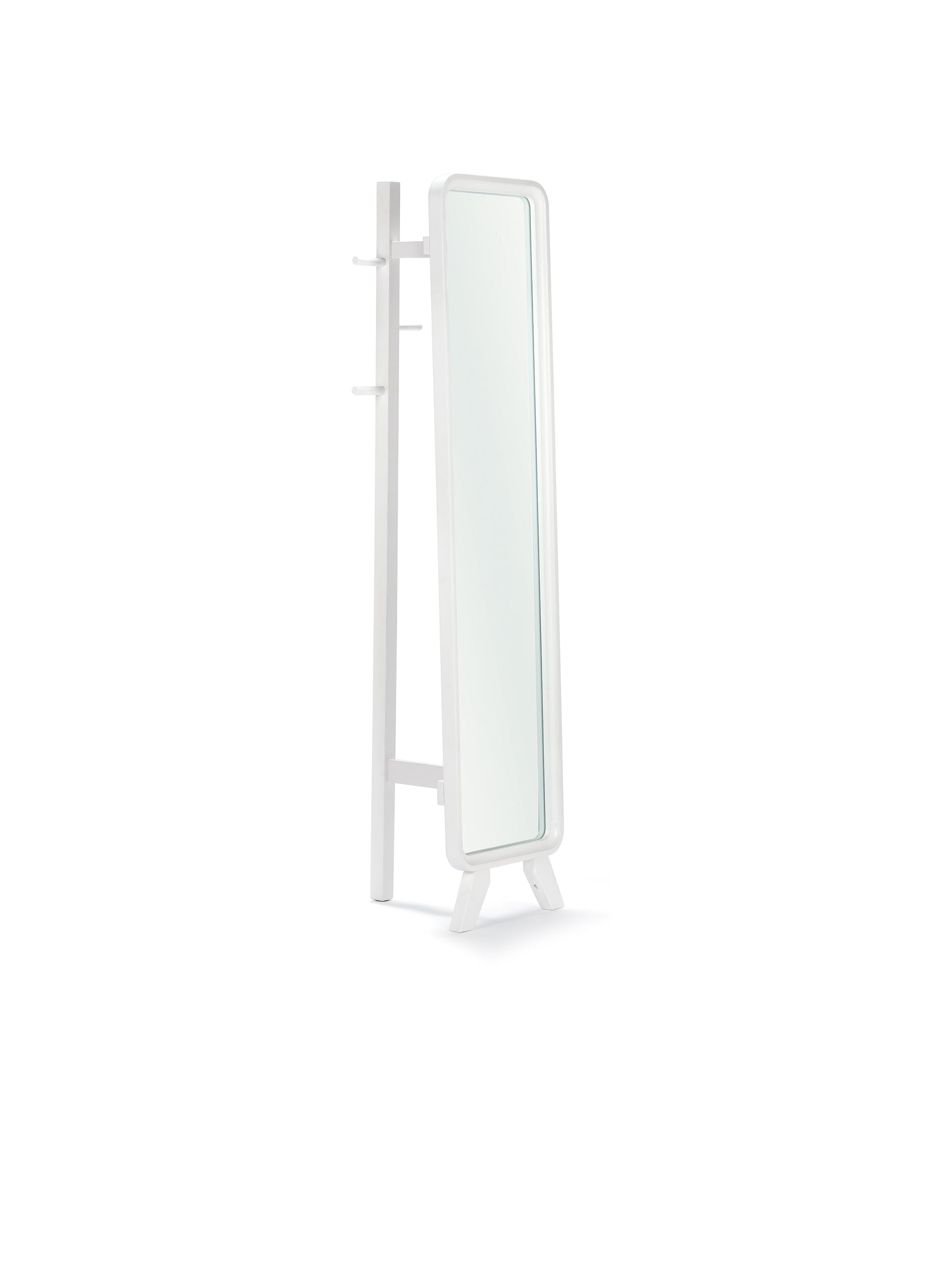 This firm beech wooden frame standing mirror with sturdy wooden pegs is a great addition to your bedroom and storage. This space-saving mirror showcases smooth finishes with a sophisticated look and it's built to last. This slightly slanted Nordic wooden frame mirror gives an aesthetic vibe to your room.