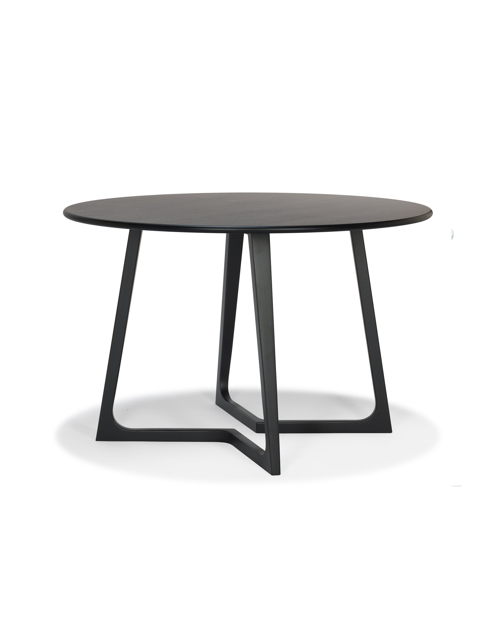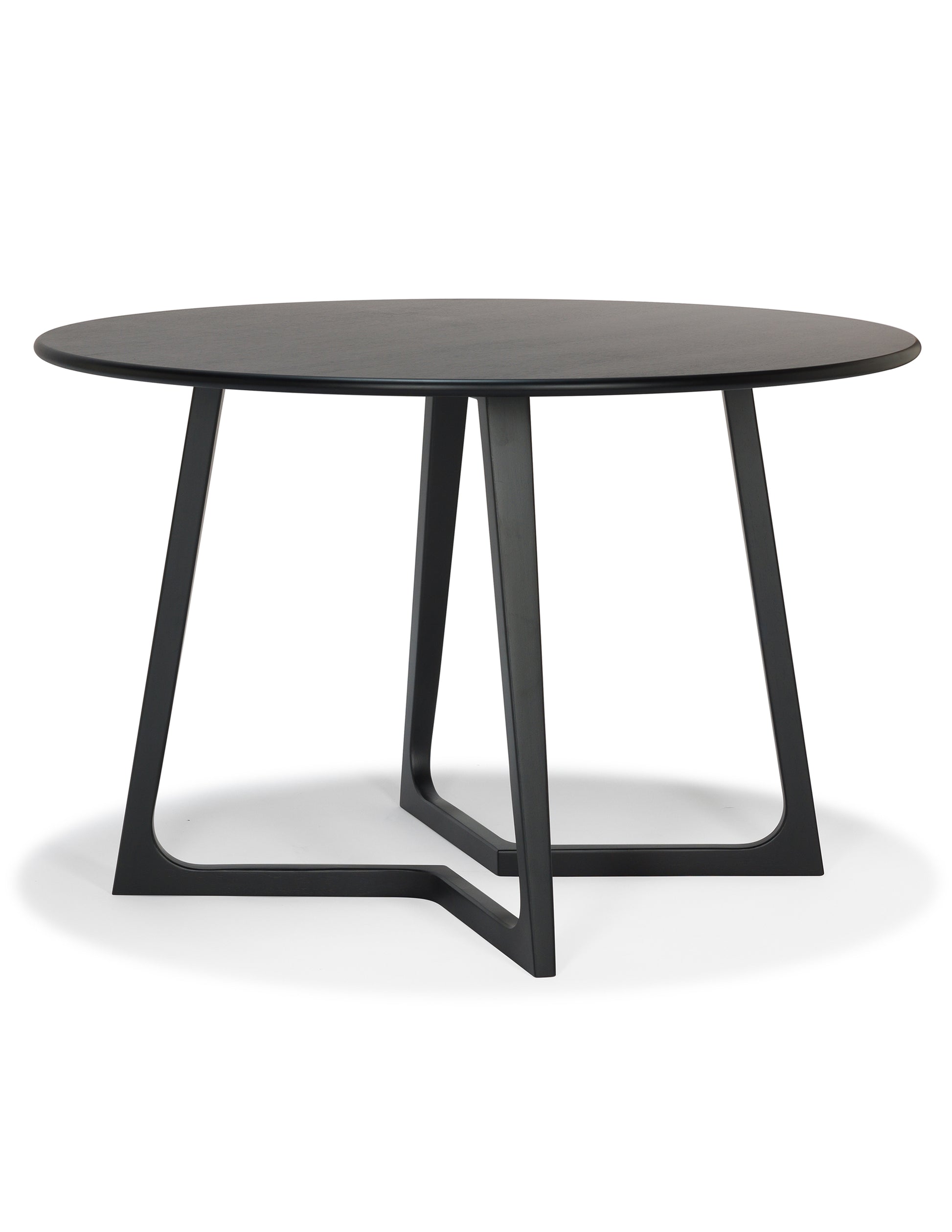 This dining table provides an understated look that will blend into any style room. The V-shaped legs create a unique silhouette while maintaining its sturdiness and not impeding on seating space. The legs combined with its circular top maximizes space utilization and customization to whatever your needs are.