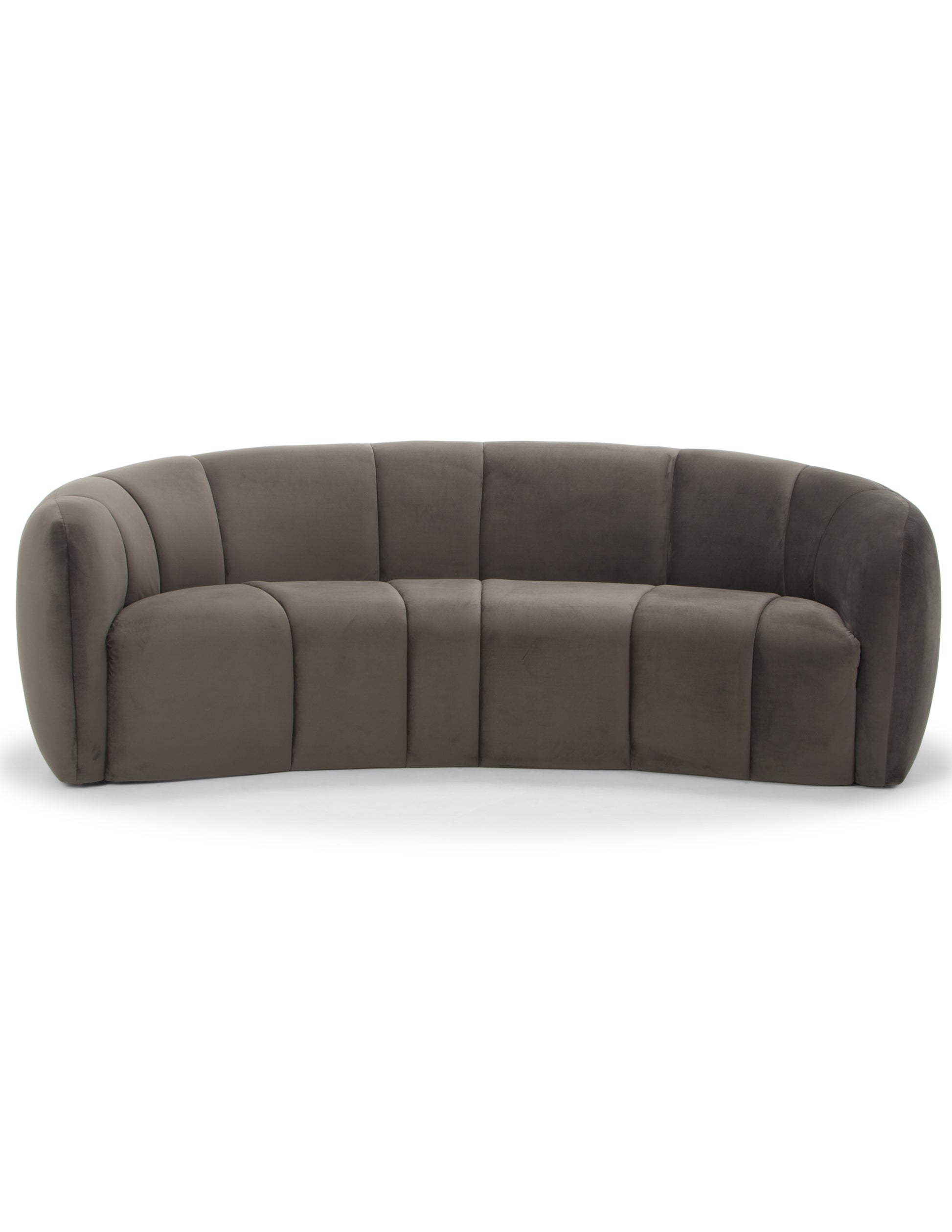 The Eclipse sofa features a smooth, merging soft curves and comfort. The perfect piece for any living room, its c shaped silhouette comfortably seats three. Available in two shades of plush velvet.