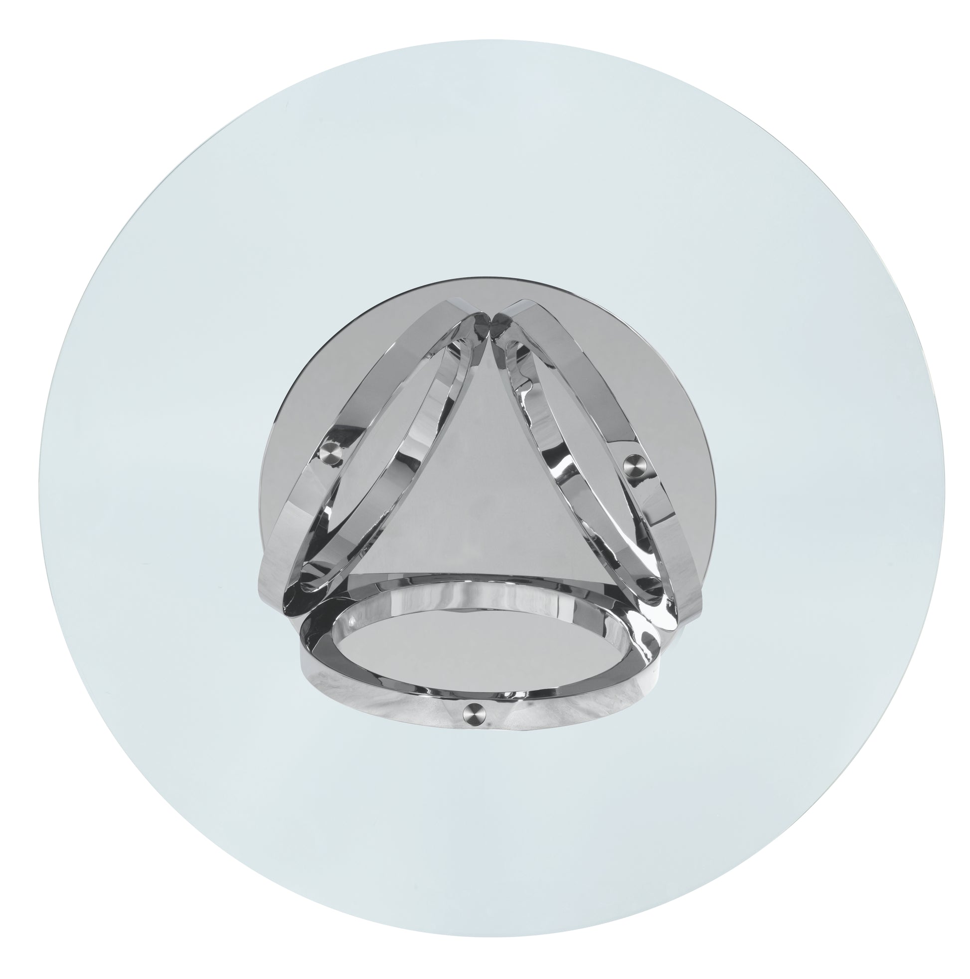 Glass top over a stunning designed steel base. Three O-shaped sculpture style polished steel rims hold the clear glass up, creating the perfect statement piece. While the stainless steel base ensures stability. Each detail on this dining table perfectly designed for your home.