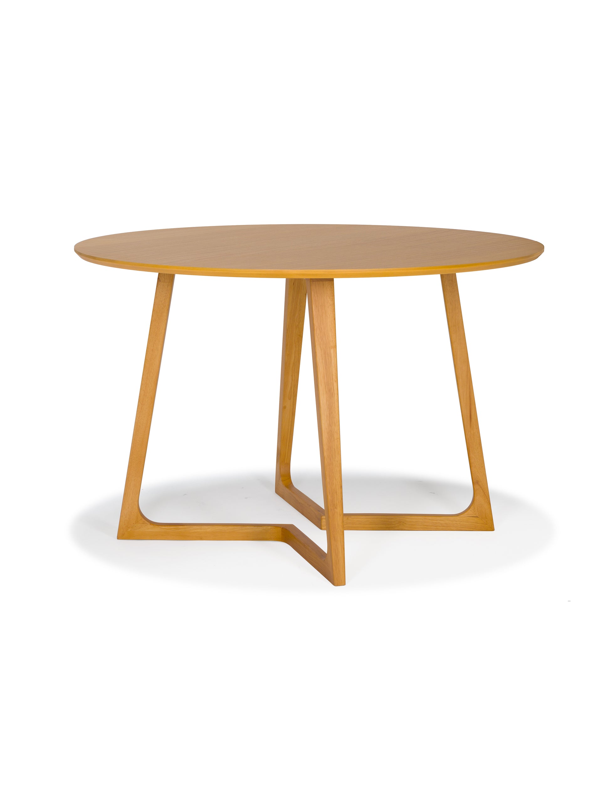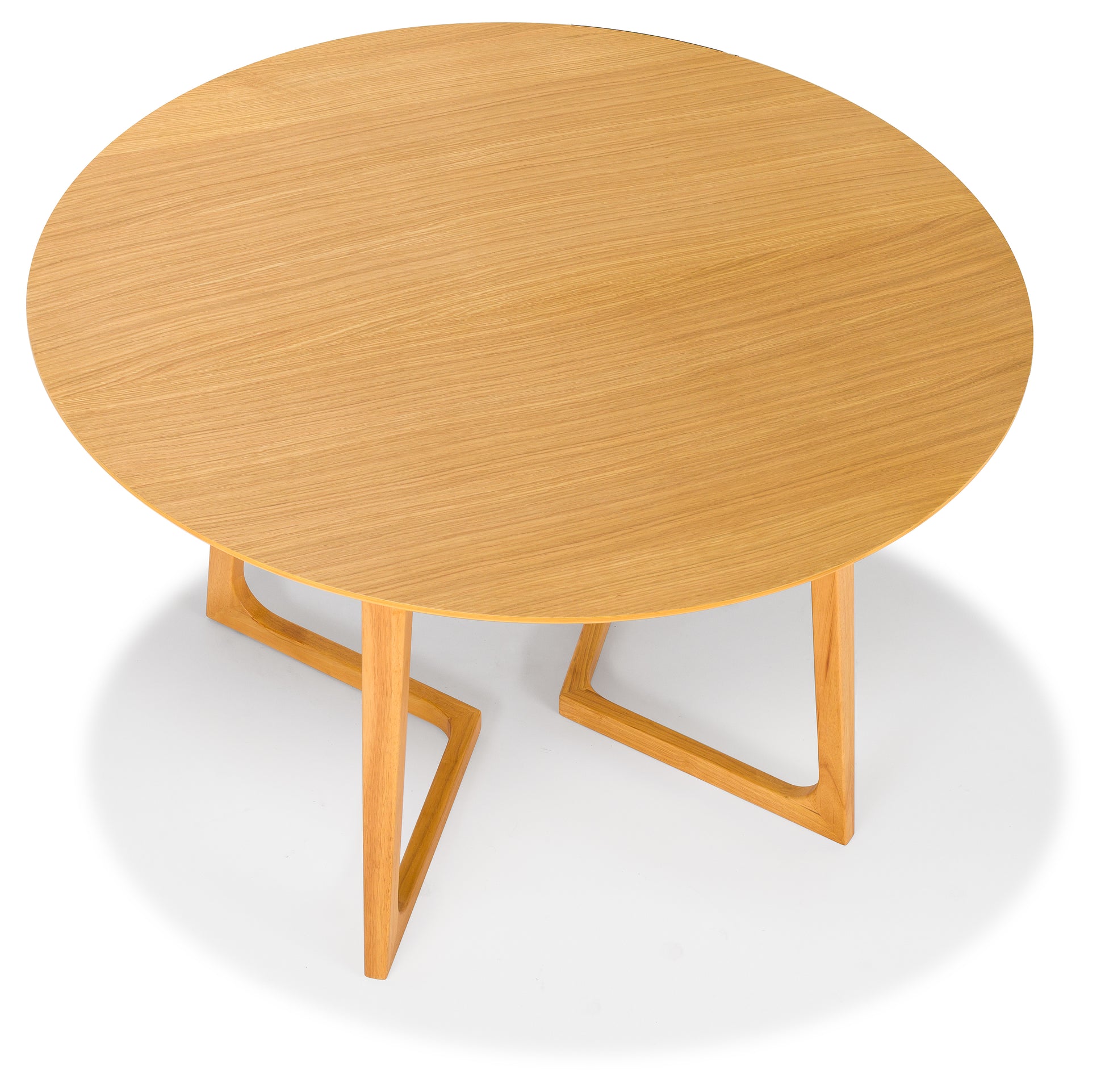 This dining table provides an understated look that will blend into any style room. The V-shaped legs create a unique silhouette while maintaining its sturdiness and not impeding on seating space. The legs combined with its circular top maximizes space utilization and customization to whatever your needs are.