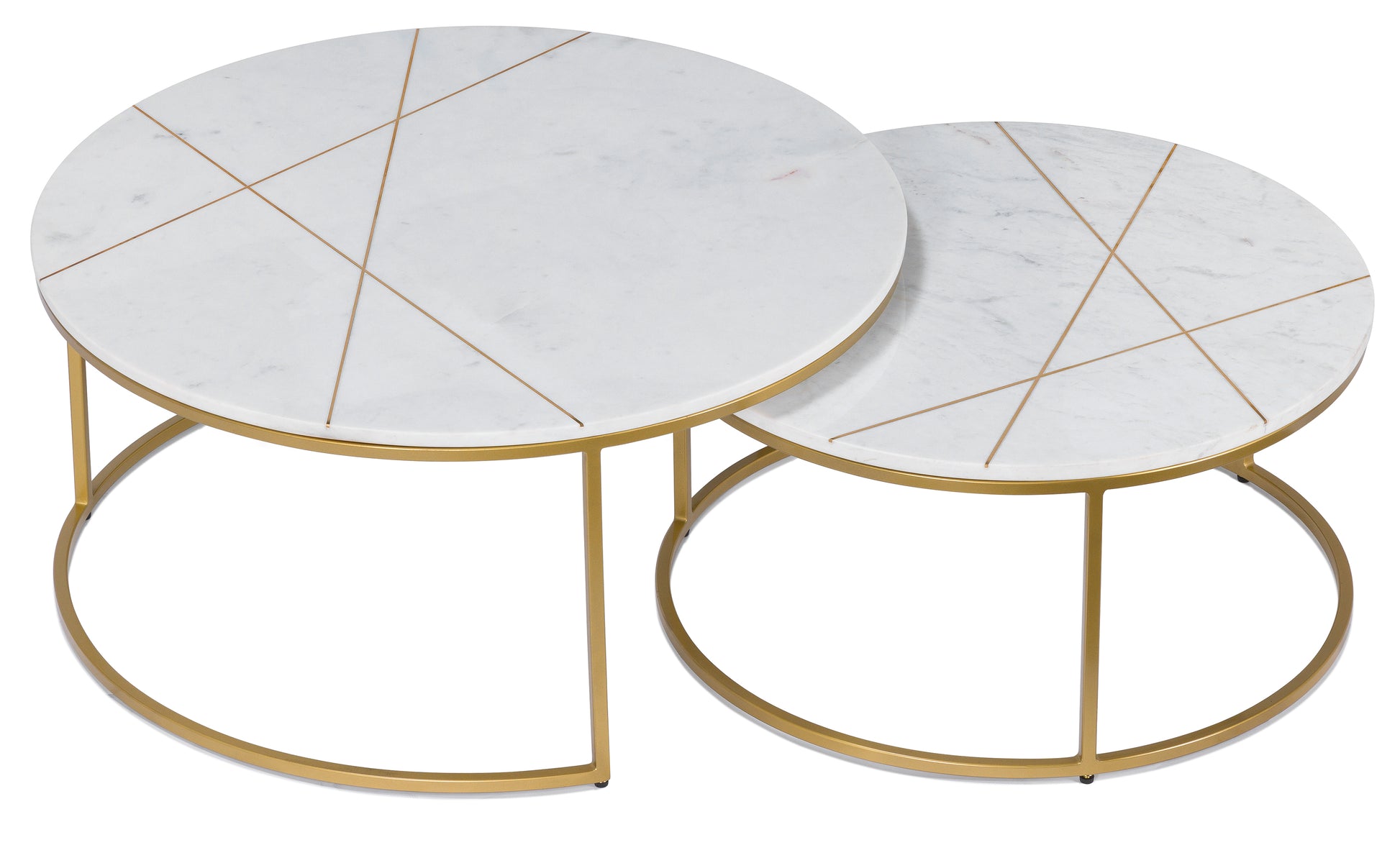 Our Jane Nesting Coffee Table bring a minimalist silhouettes of mid-century modernism and timeless materials. This set is made with a sleek gold metal frame that pairs with a white marble tabletop.