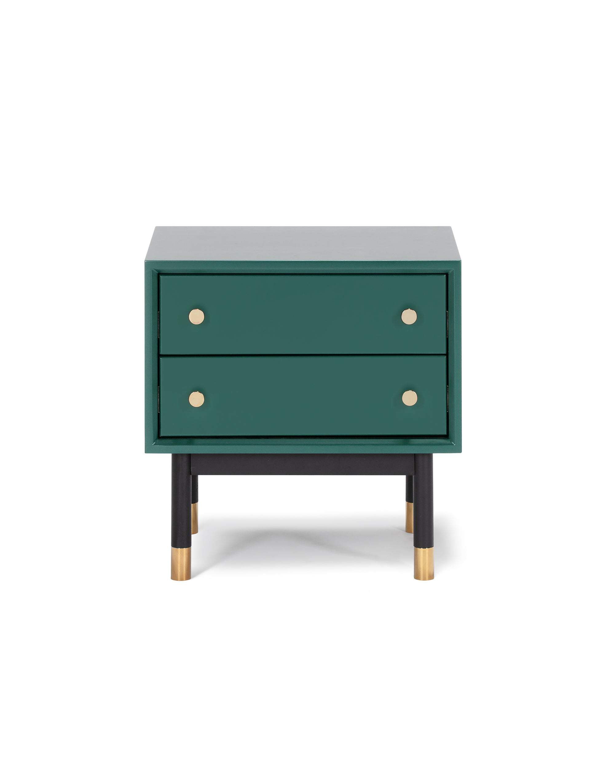 From chic gold knobs to tubing on legs, it's all in the detail for this line. Lofted on slender legs, this side table is made of solid wood in satin green finish for light and casual look with a significant dose of charm.