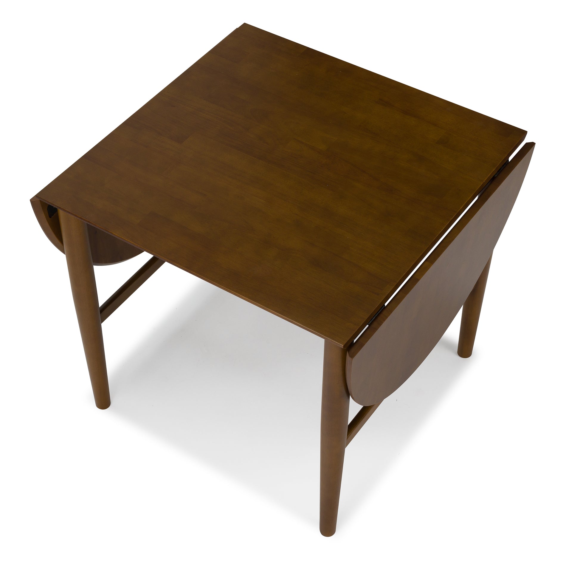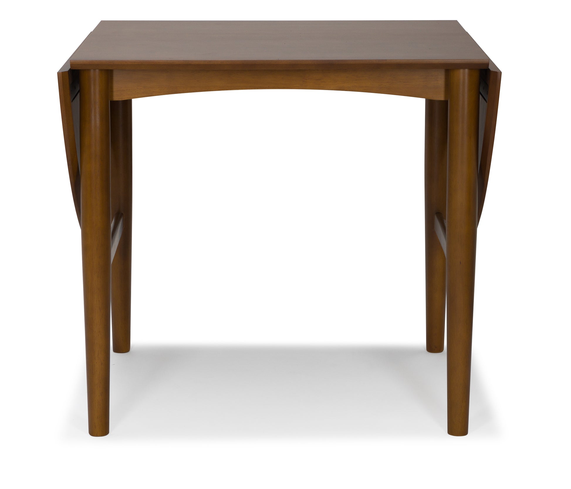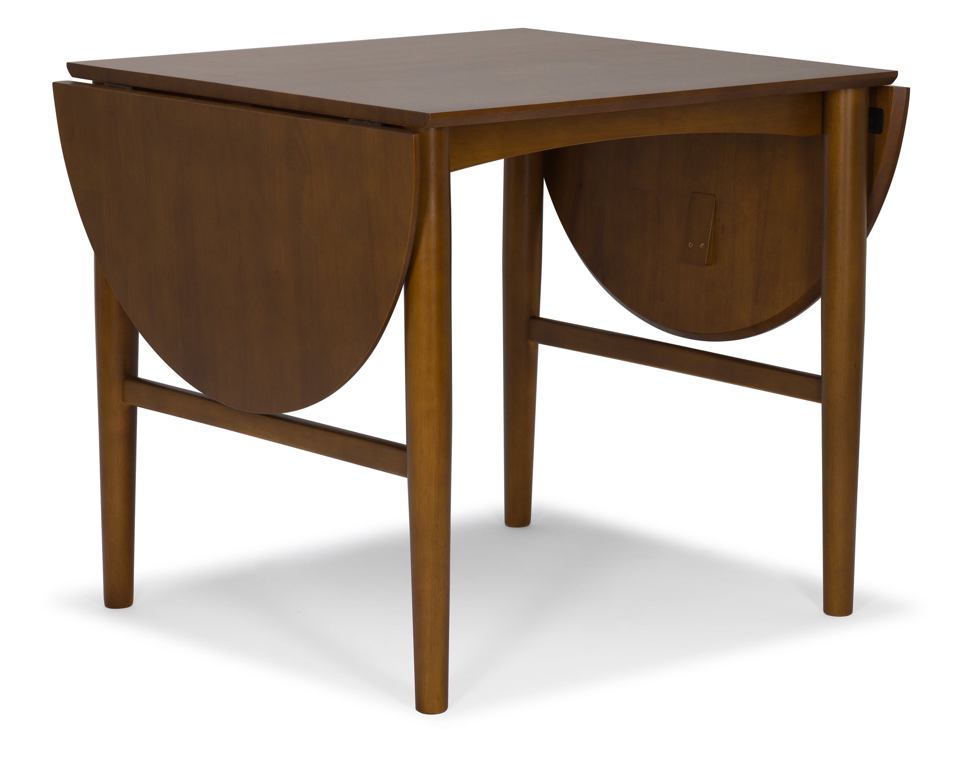This drop leaf table provides flexibility for customization of your space. The square base accommodates 2 people and the extended oval tops will accommodate 4 people. The options make this piece perfect for smaller spaces or for those who have a varying number of guests. The mid-century modern design combined with natural solidwood detail provide a simple yet timeless addition to your home.