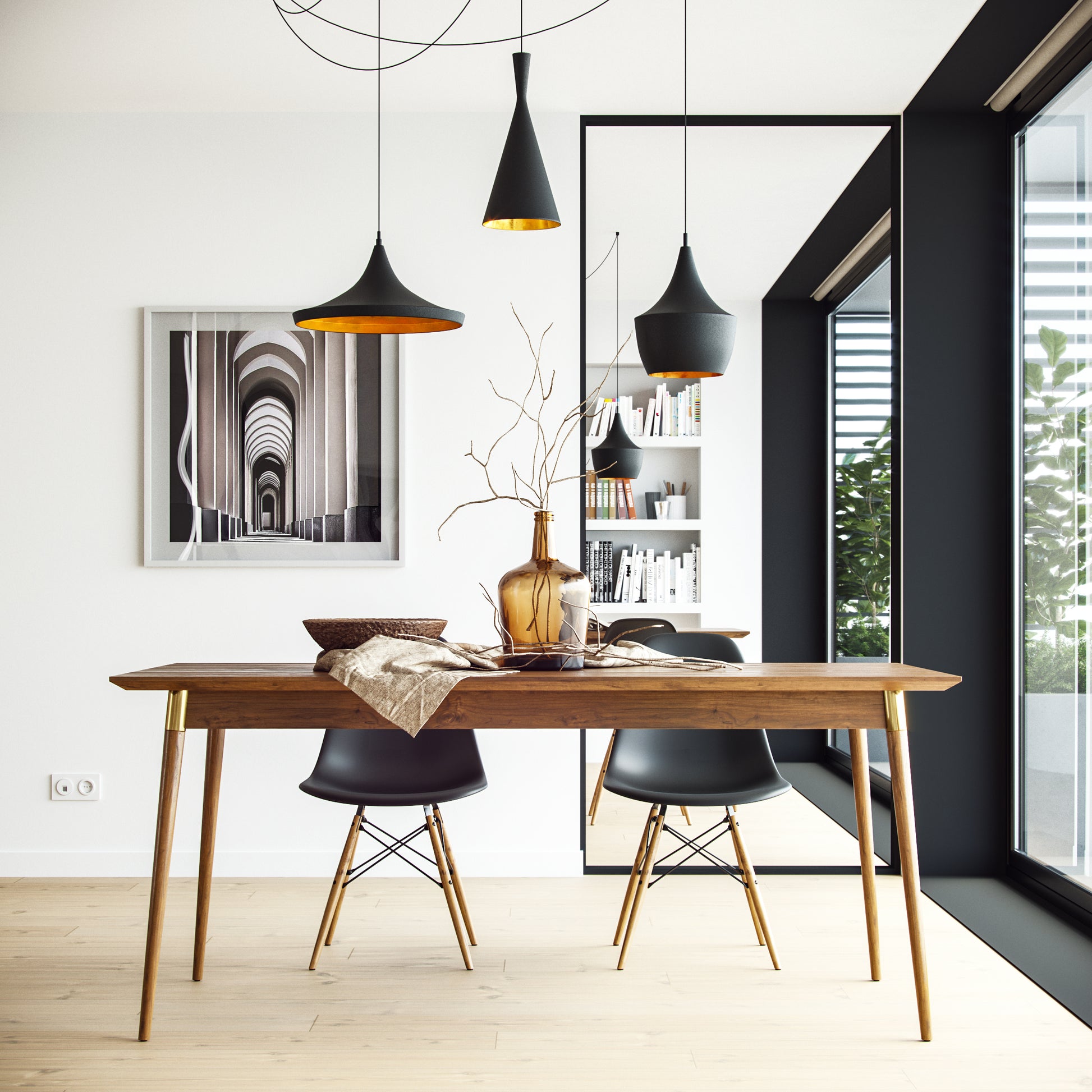 With a clean-lined silhouette, tapered legs and hints of gold tubing, this mid-century modern table gives a touch of casual charm to any dining room. Crafted from walnut wood, this solid wood table is perfect for everything from family dinners to game nights.