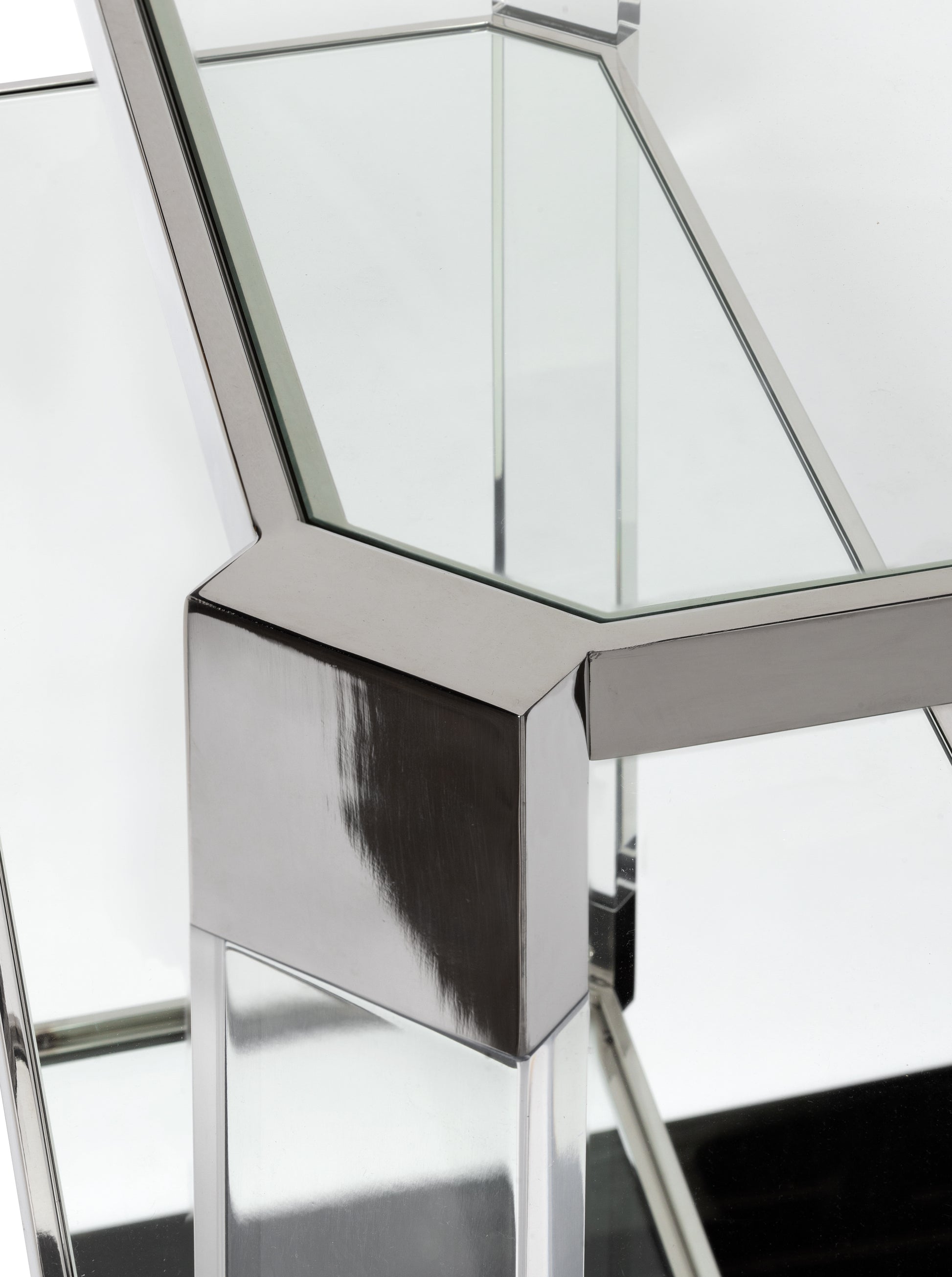 The Oden Console Table is a staple in modern furniture design. It has a crystalline design with polished stainless steel and acrylic to structure the table. This futuristic table will fit well in any living room.