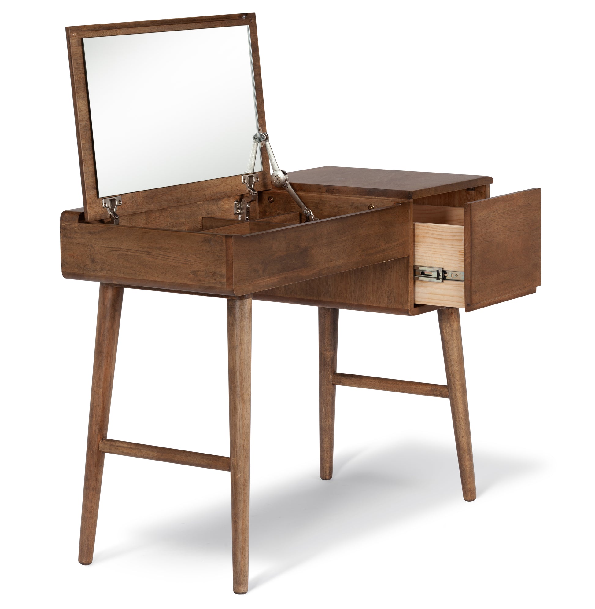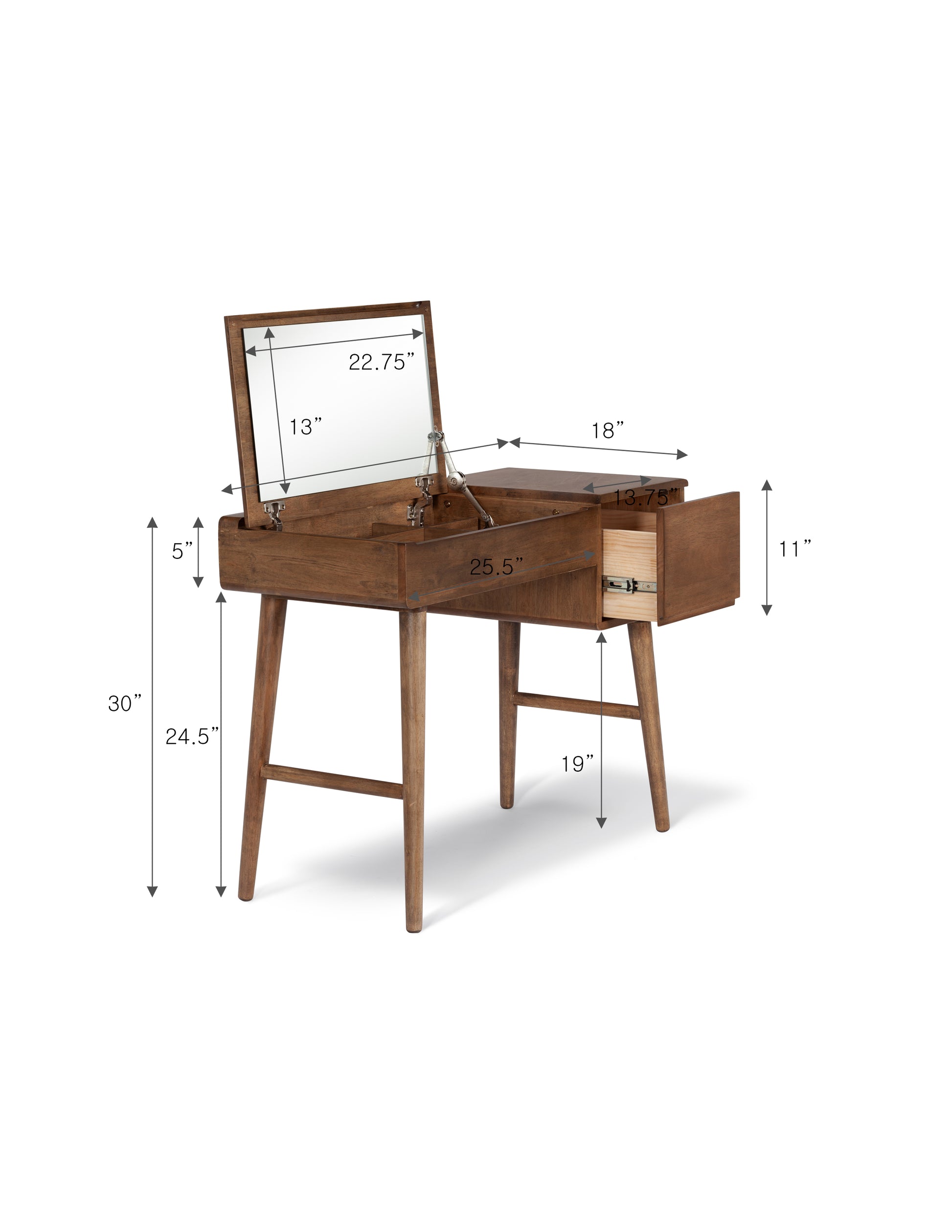 The Oliver Vanity Desk features plenty of storage space and a sophisticated design. This desk is crafted in a high quality rubber wood, and can be used as a workspace or vanity.