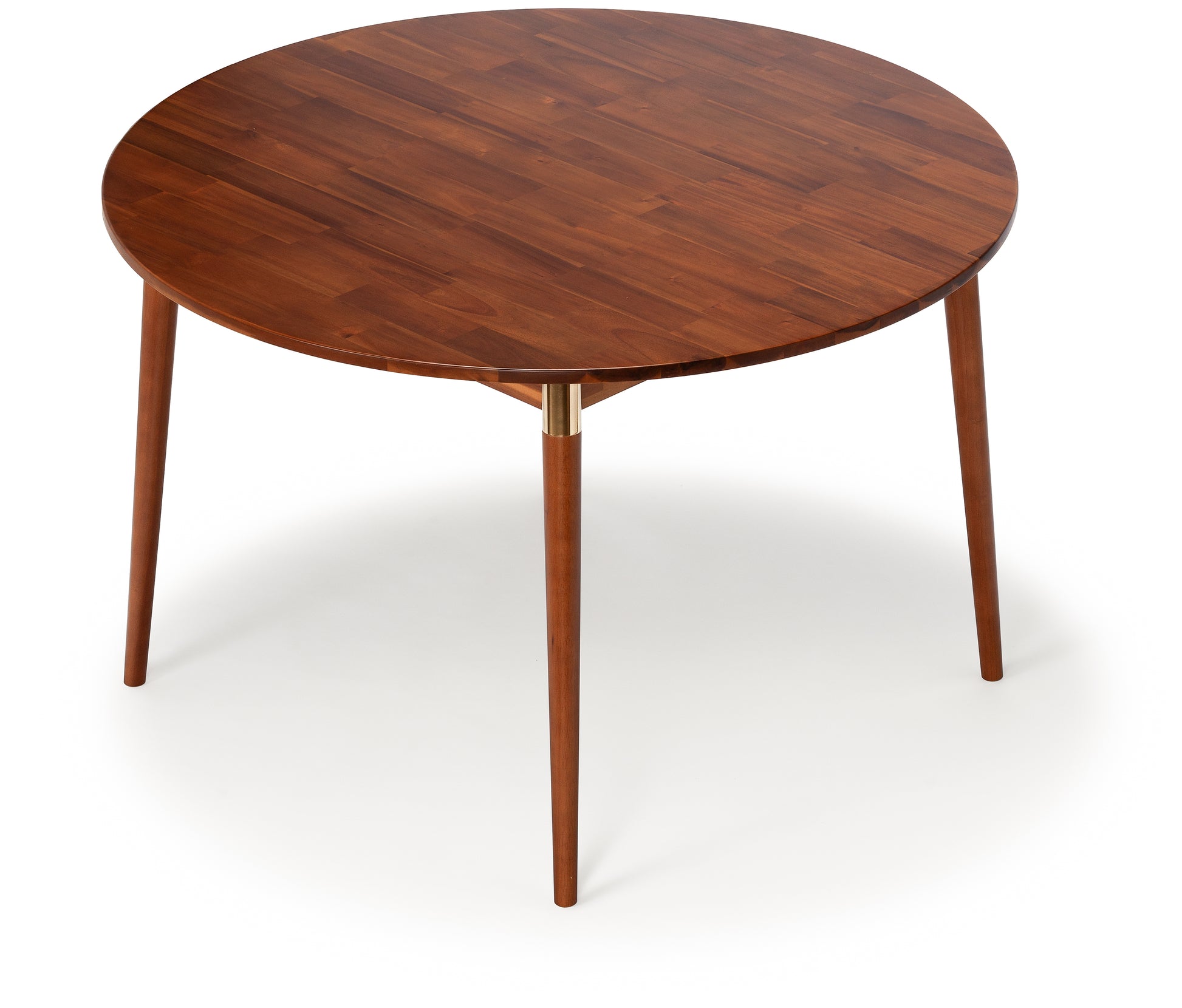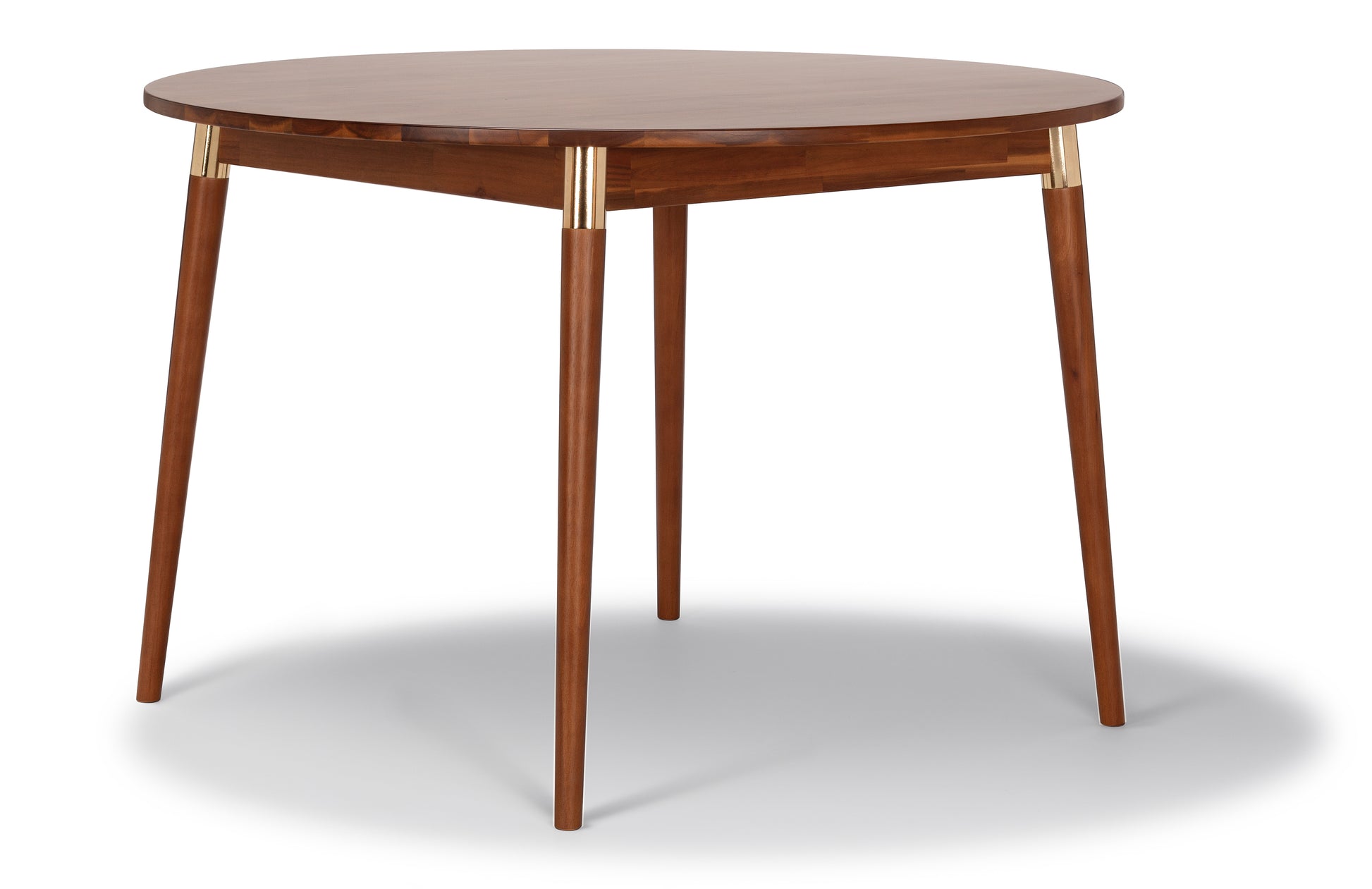 With a clean-lined silhouette, tapered legs and hints of gold tubing, this mid-century modern table gives a touch of casual charm to any dining room. Crafted from Acacia wood, this solid wood table is perfect for everything from family dinners to game nights.