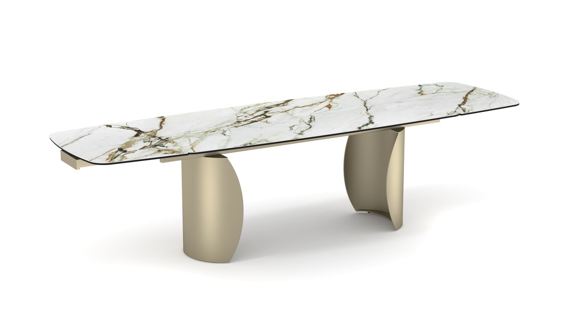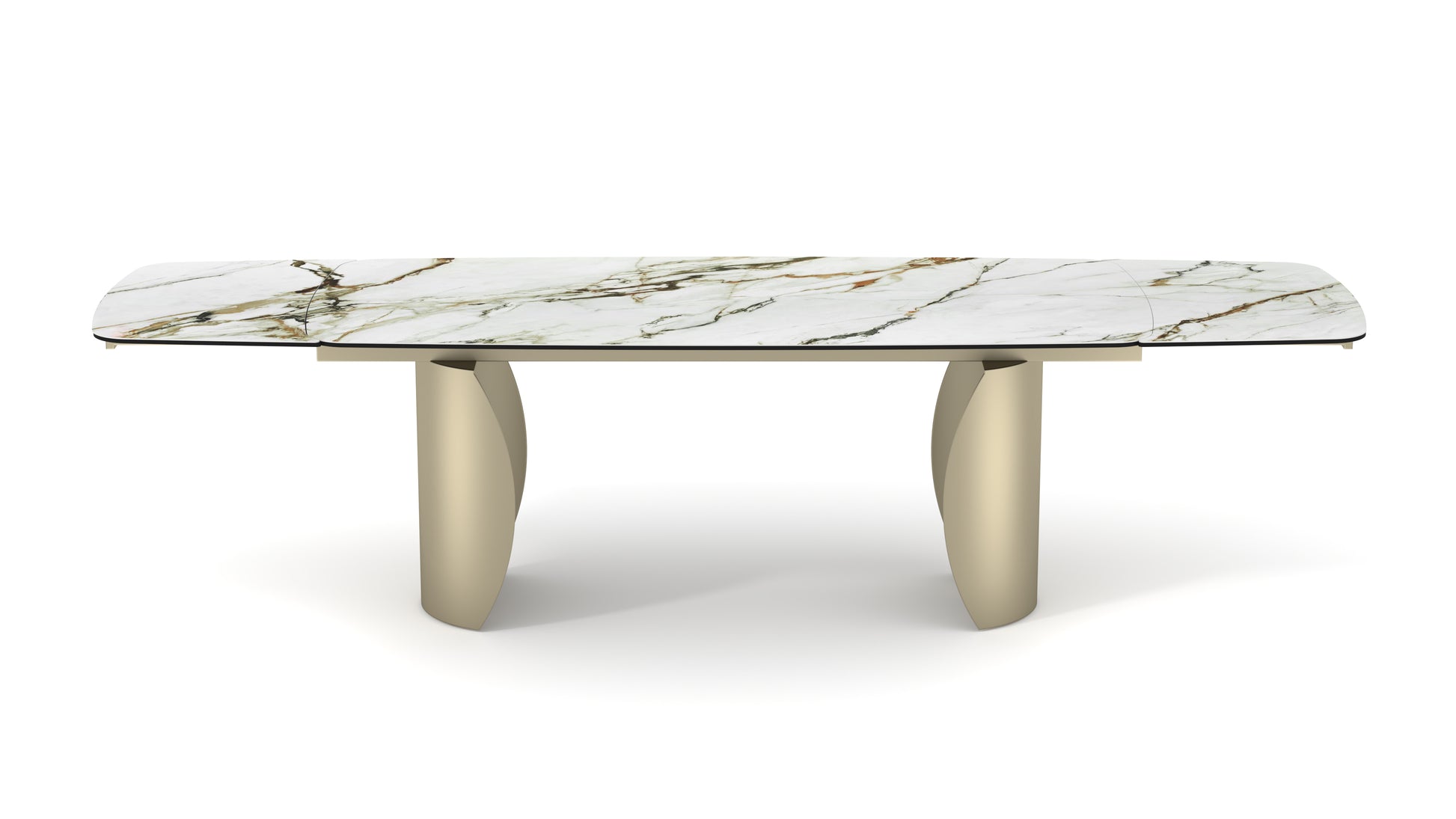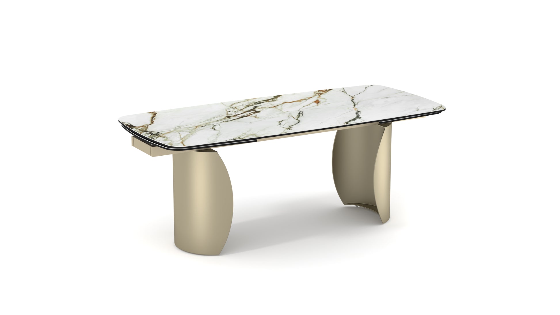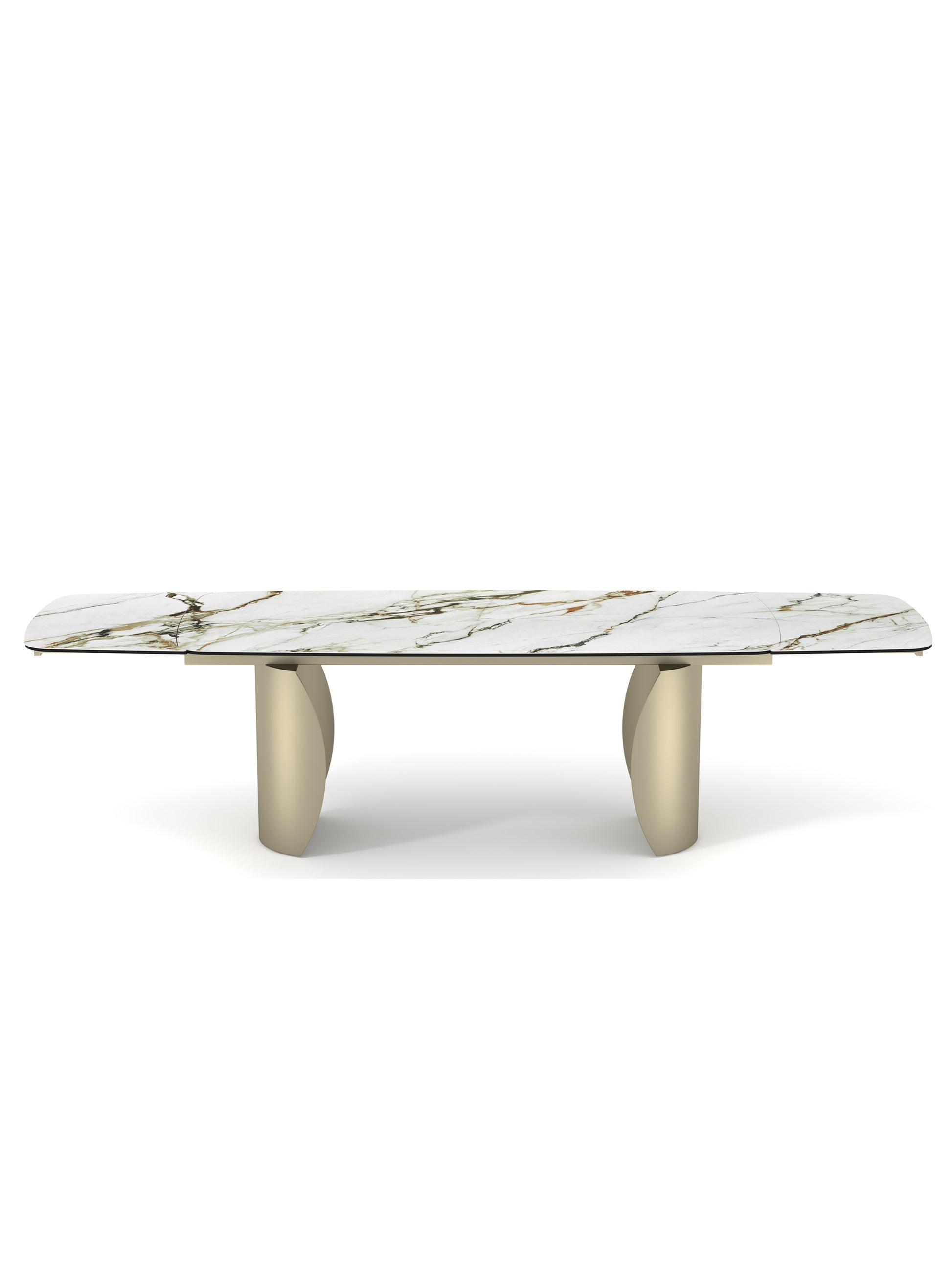 The swan extension dining table is a stylish addition to any dining area. With its spacious ceramic tabletop, it can comfortably seat 8-10 people, making it perfect for family meals or gatherings with friends. The sturdy metal base adds a modern touch, ensuring both durability and simplicity. This table is a great choice for anyone looking for a practical yet attractive dining solution.